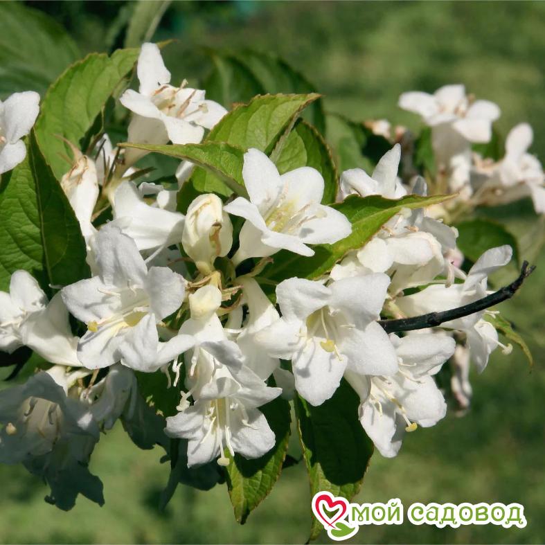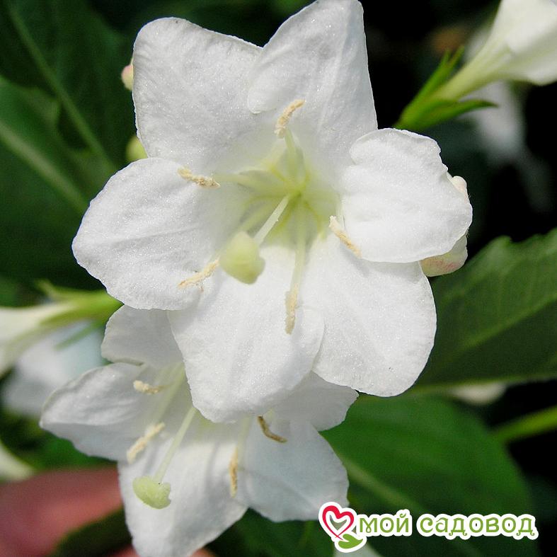 Вейгела «Бристол Сноуфлейк» — красивоцветущий кустарник, высотой и шириной до 1,5 м. Крона более вертикальная. Листья длинные, зеленые. В мае-июне куст полностью покрывается белыми крупными колокольчатыми цветками, размер которых достигает 3 см. Цветение позднее, продолжительное. В это время вейгела смотрится элегантно и одновременно трогательно. Место по возможности должно быть солнечное, защищено от ветра. Сорт склонен к повторному цветению. Уход за растением:  Саженцы вейгелы нужно сажать в плодородную, воздухопроницаемую почву. Сразу учитывайте, что место постоянное, так как пересадить массивный куст с пышной кроной даже при желании будет практически невозможно. Для того, чтобы растение выглядело аккуратно, его нужно стричь, удаляя больные и поврежденные ветки и формируя крону так, как вам это нужно. В первый сезон кустарник нуждается в регулярном поливе, затем вейгелу поливают только при длительных засухах.
